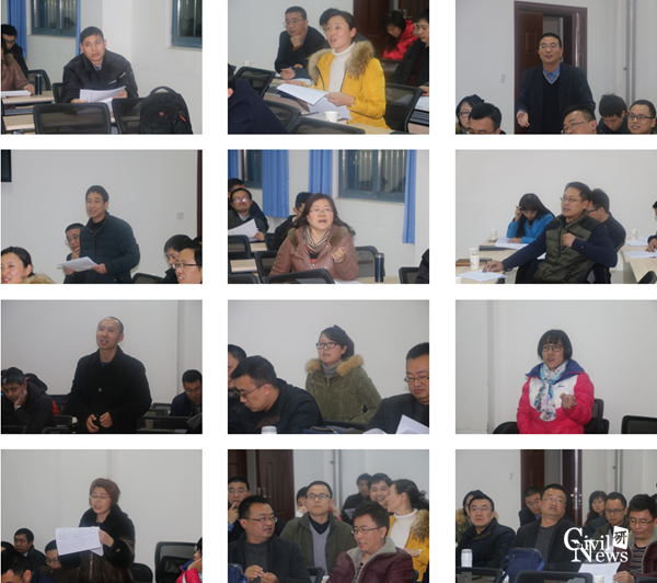 随后参会老师们一起互动讨论,发言踊跃,广开言路、气氛活跃,肯定了这次聘任改革对学科建设与学院发展的重要性,纷纷表示支持本次岗聘改革,愿意为学院发展出力,一致期望学院能够发展得更好。申玉生、于丽、张方、张志强、郑余朝、周佳媚、蒋雅君、潘毅、罗忠贤、许炜萍、孙晓丹、王耀琴、方勇等多位老师围绕国家级项目、高水平论文、发明专利成果转化、个人及团队岗位要求、高水平国际会议、教学学时、教改项目、教材建设及规范标准编制等方面提出了宝贵的建议,对学院教师聘任方案进一步完善具有重要价值。
