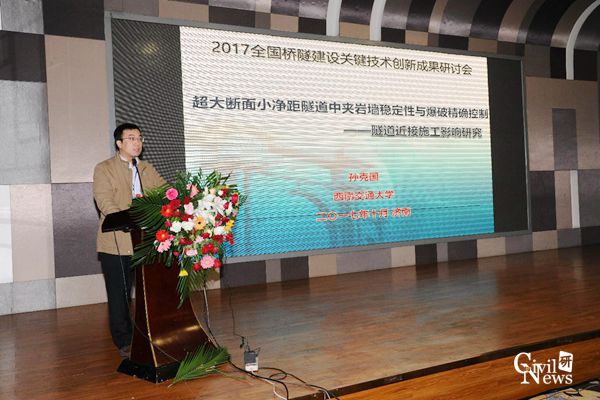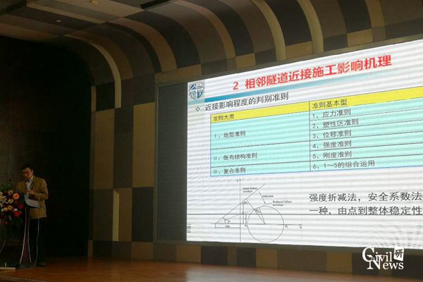 孙克国老师以大会报告“超大断面小净距隧道中夹岩墙稳定性与爆破精确控制”的形式分享了项目的部分研究成果,重点介绍了超大断面小净距隧道的近接施工影响,为济南市连接线工程六条隧道的小净距段提供了技术指导。