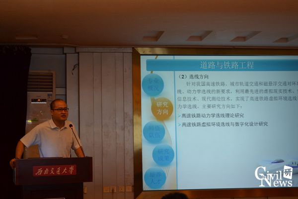 道路与铁道工程系杨荣山副教授介绍了轨道、选线、路基方向的的突出成果以及近年来研究生招生情况和就业情况;地下与隧道工程系副主任晏启祥教授对学科现状,研究方向及近几年的科研业绩和学术成果展开介绍;桥梁工程系主任李永乐教授简要介绍了色情短剧
