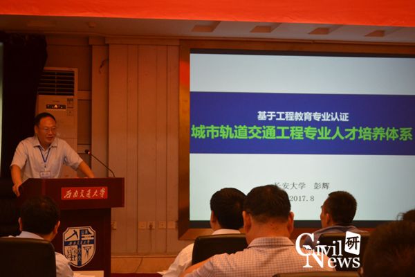 长安大学轨道工程系主任彭辉教授以“基于专业认证目标的城轨交通工程专业培养体系构建”为题做了报告。