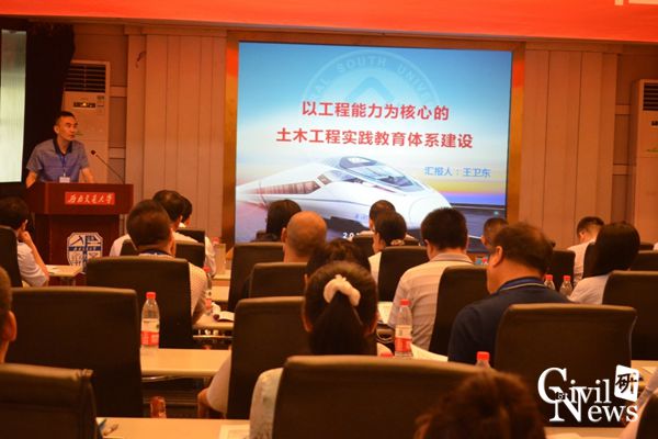 副院长、重载铁路工程结构教育部重点实验室主任王卫东教授做了关于“以工程能力为核心的土木工程专业实践教育体系建设”的报告。