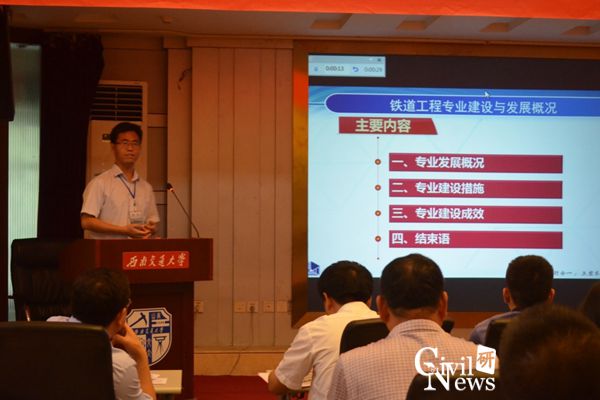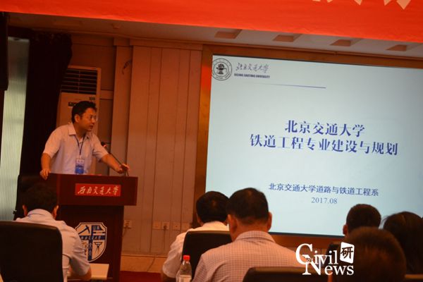 北京交通大学道路与铁道工程系副主任时瑾教授做了关于“北京交通大学铁道工程专业建设发展规划”的报告。从专业现状、专业建设总体目标和专业建设具体内容三个方面对北京交通大学铁道工程专业进行介绍。