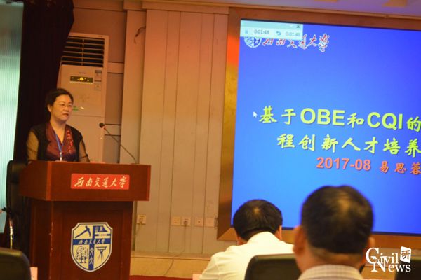 易思蓉教授做了以“基于OBE理念的铁道工程培养方案解析”为题的报告。对OBE-CQI工程教育意义进行说明,讲述了基于OBE工程教育改革从关注学生学了什么转变为学生学会了什么,将学生放在首位,围绕学生设计培养,注重课堂管理;并强调师资队伍要持续培训。