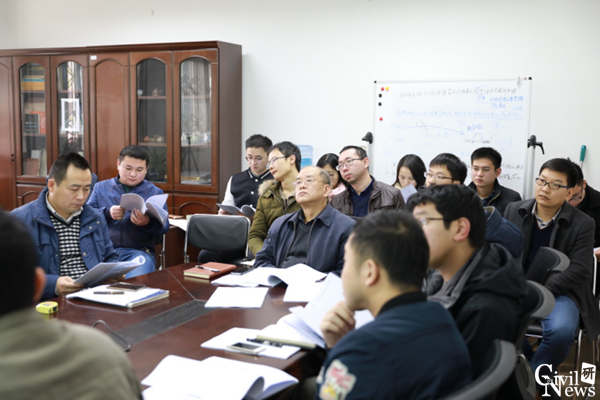 高性能组合桥面板科研攻关小组组长刘益铭博士生首先介绍了新型大纵肋正交异性钢板—活性粉末混凝土(RPC)组合桥面板提出的背景和该类结构受力性能研究的关键问题,详细阐述了研究目标、技术路线、试验模型设计和加载测试方案。汇报完毕后,团队博士和硕士研究生针对试验方案进行了深入的探讨,张清华、卜一之教授对试验方案存在的问题提出了进一步细化和完善的具体建议,为国家自然科学基金试验研究的高质量开展打下了夯实的基础。高性能组合桥面板科研攻关小组副组长程震宇博士生详细介绍了另一类新型高性能组合桥面板的研究进展和下一阶段的试验研究方案,团队成员就试验方案进行了深入讨论,对下一阶段的研究工作提出了多项建设性意见和建议。