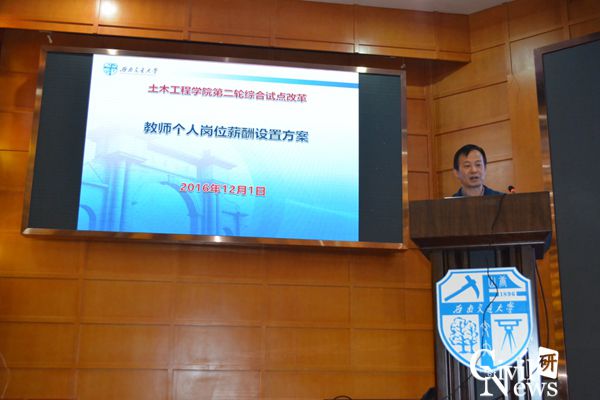 接下来,蒲黔辉副院长给大家详细介绍了教师个人岗位薪酬设置方案。他介绍了同岗同酬、高能高酬,保证骨干群体的收入稳定,工程岗的薪酬低于教学与科研岗等薪酬设置总体原则。