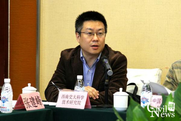 科学技术研究院张骏副院长发表欢迎致辞。张骏副院长表示:近年来,学校的众多科研项目,受到了中国铁路总公司科技部以及各界专家的大力支持和悉心指导,对此他代表学校表示衷心的感谢;其次,他还表示:王平教授所带领团队在关于道岔方面的研究是学校极具特色的研究方向,也是学校重点关注的科研团队,并希望此次能在莅临会议的各位领导及专家的帮助指导下成功完成方案评审以及后期的一系列科研实验。