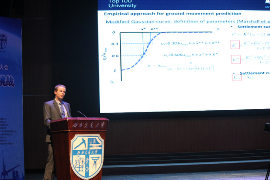 诺丁汉大学地质力学中心主任Alec Marshall介绍了greenfield 隧道在沙性地层中的应力分析。通过数值分析和离心机实验得到的数据进行耦合,最终得到一个合理的分析结果。