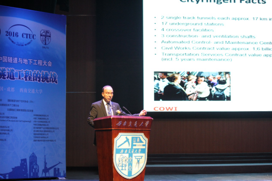 举办,很高兴能再次在西南交大举办隧道工程界的顶级会议,接着Mr. Tarcisio B.Celestino介绍了ITA的成立、发展和现状,肯定了中国在隧道工程领域做出的贡献,并预祝大会圆满成功。随着Mr. Tarcisio B.Celestino致辞结束,2016中国隧道与地下工程大会暨中国土木工程学会隧道及地下工程分会第十九届年会国际专题报告正式开始。