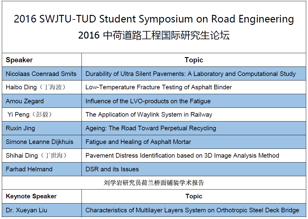 道路工程学科师资概况与主要研究方向。随后Xueyan Liu 研究员从国际学术声誉、校园环境、院系组成、师生概况等方面介绍了荷兰代尔夫特理工大学,并概要地介绍TU Delft路面工程系在沥青混合料微观到宏观力学建模的最新研究成果。随后任东亚老师主持了中荷道路工程研究生国际学术研讨会,来自TU Delft路面工程系的5位博士研究生,与色情短剧