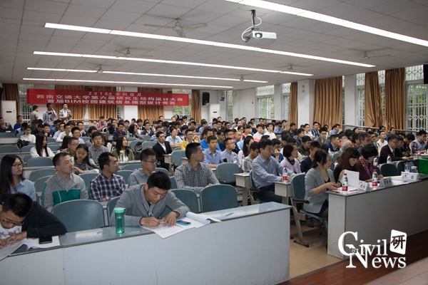 副院长祝兵发表讲话:“正值120周年校庆之际,学生踊跃参与学科竞赛献礼母校,在此感谢支持本次赛事的个人和单位。”随后,亚新集团莫仁维先生致辞,解释了BIM的两个观念首先是土木的本质,其次是跨领域的整合。接下来参赛研究生代表廖晓璇同学发言,分享建模的整个心路历程。