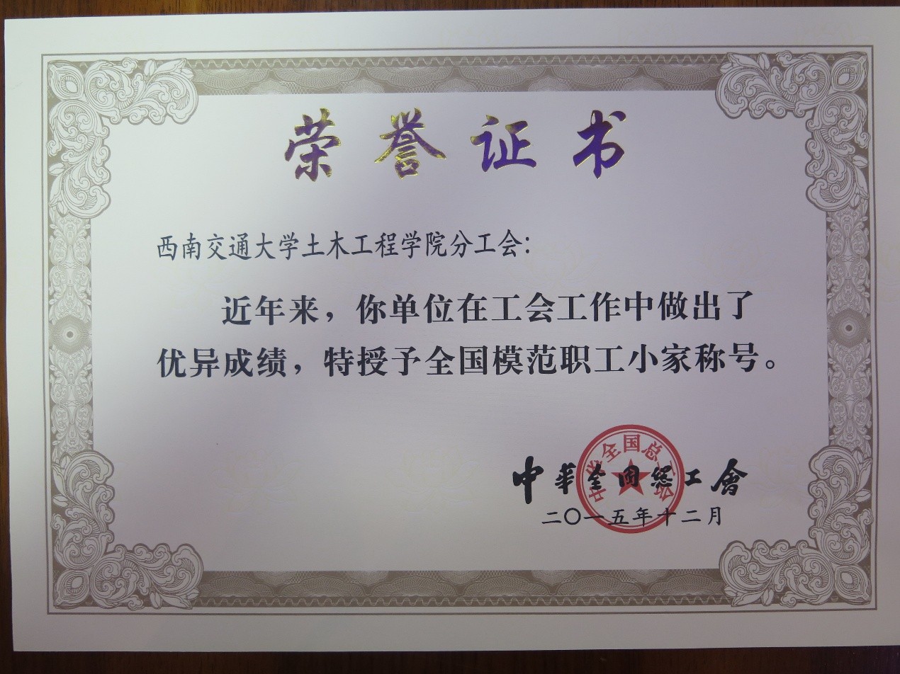 工会取得了优异的成绩,在2011年3月荣获全国总工会授予“全国优秀职工书屋”称号,2013年2月,四川省教科文卫系统授予“模范职工之家”称号。2015年,再次从四川省总工会传来喜讯,全国总工会授予色情短剧
