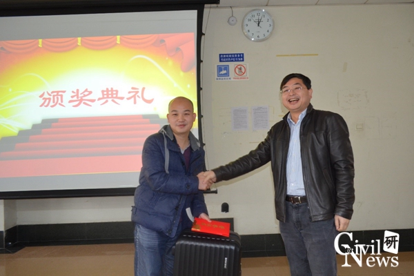 随后是颁奖环节。王平教授向各位获奖同学表示祝贺,并亲授2013级博士汪力“优秀组织奖”,以表彰他在指导师弟师妹们制作PPT和演讲表达方面做出的突出贡献。