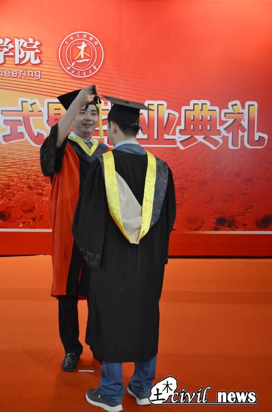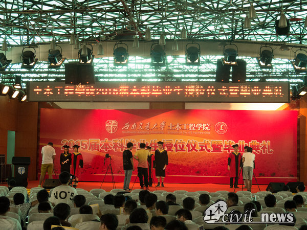 2015届本科生毕业及授位决定》。决定表示,四年以来,2011级同学勇于担当、志存高远,在学习生活中攻坚克难、不断进步,发扬“竢实扬华,自强不息”的交大精神,取得了优异的成绩,决定授予2011级的424名同学工学学士学位。希望他们在今后的学习、工作和生活中,再接再厉,创造新的辉煌!随后,高波教授、钱永久书记、易思蓉教授和苏谦教授分区依次为毕业生逐个授学位礼并合影留念。