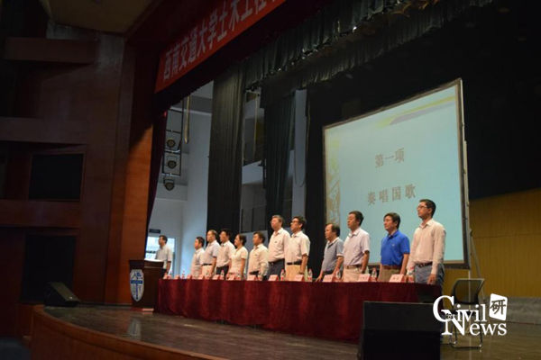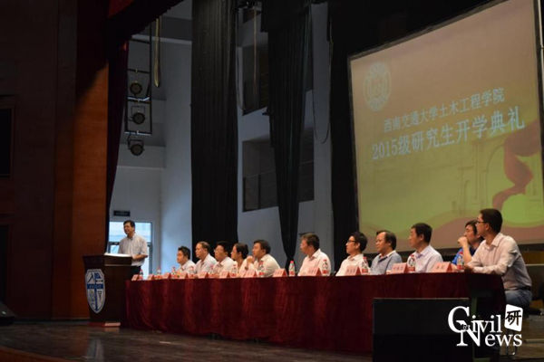 随后,研究生新生代表李孝攀同学发言,他在演讲中提议在座的2015级新生:作为一名交大土木人应该勇于挑战困难,不断进取,不断提高自己,成为一名合格的“五有交大人”。