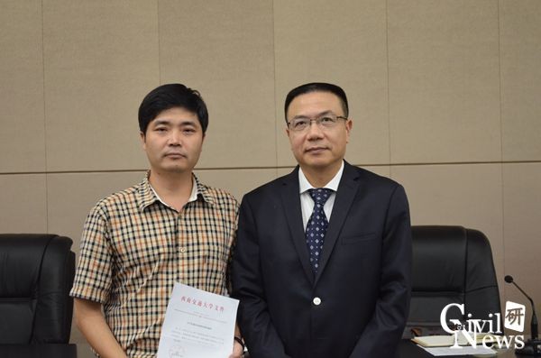 在聘任仪式环节,徐飞校长分别为高波院长,苏谦副院长,祝兵副院长,崔凯副院长颁发聘任通知。