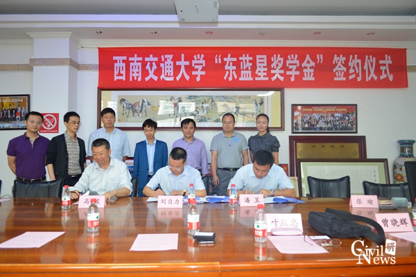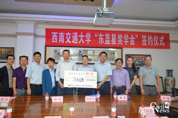 “东蓝星奖学金”签约仪式在土木馆1208会议室举行。成都东蓝星科技发展有限公司董事长刘自力、副总经理刘应虎、销售部经理谢凯、行政部经理张瑜,色情短剧