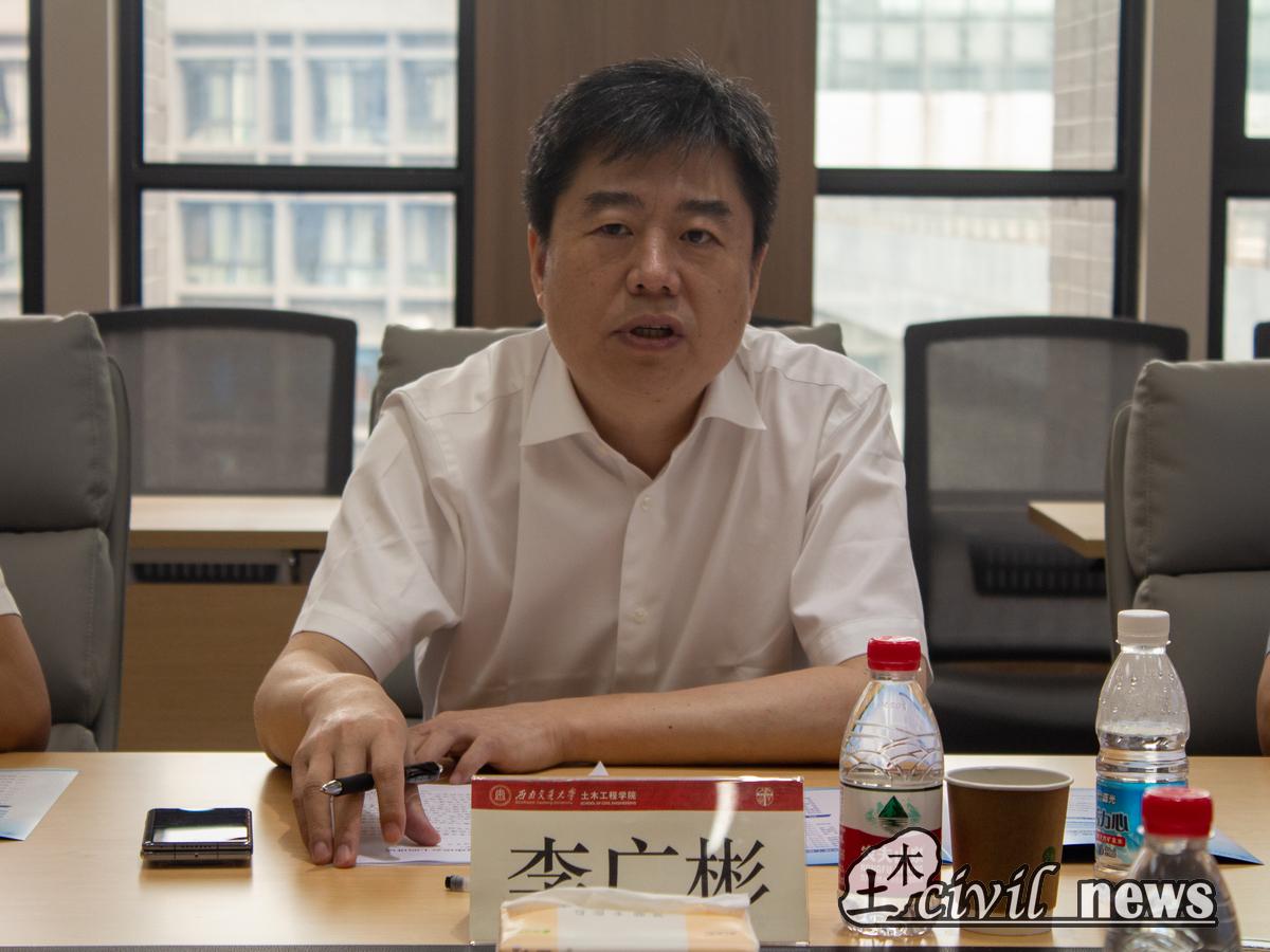总经理助理李广彬就校企双方为何能达成合作、校企双方合作能创造出什么价值以及集团对学校的期待三个问题发表讲话。他指出校企双方对合作的高度重视、双方秉持相同的理念“投身强国建设,助力民族复兴”和双方往年基于良好的合作基础都是促成此次校企合作签约的关键。签约成功后,首先可以依托集团方项目,对学校开展实习实践以及就业提供服务,为学生开展就业指导或职业生涯规划,其次可积极构建各单位各院系之间的党建合作,再可依托复杂大型工程与学校共同进行科研研究。李广彬表示,希望学校能为中铁建工集团提供继续教育资源并推荐优秀师资力量与集团联合进行科研攻关。