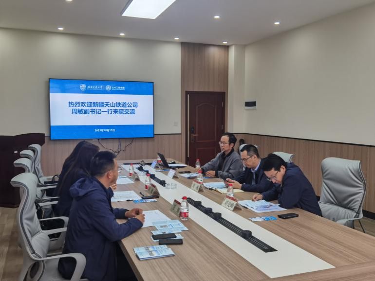 会议伊始,校企双方先后播放宣传片。新疆天山铁道公司党委副书记周敏结合宣传片内容介绍了企业的特色文化、集团风采、发展空间、福利待遇等,并简要提到了公司人才需求及业务板块。周敏副书记对此次来访学院领导的支持表达了由衷的感谢。她表示,可以通过参观交流、政策宣讲等多种形式的校企合作方式,调动同学们的积极性,帮助同学们认识企业,了解企业,更好的规划个人发展。