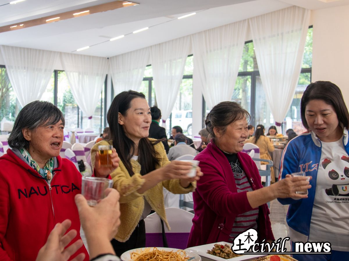 “祝贺大家重阳节快乐,并祝福所有老师身体健康,万事如意。”共进午餐前,学院党委副书记车小洁为到场的各位老师与退休职工们送上重阳节的祝词,并与各位老师热情交谈。