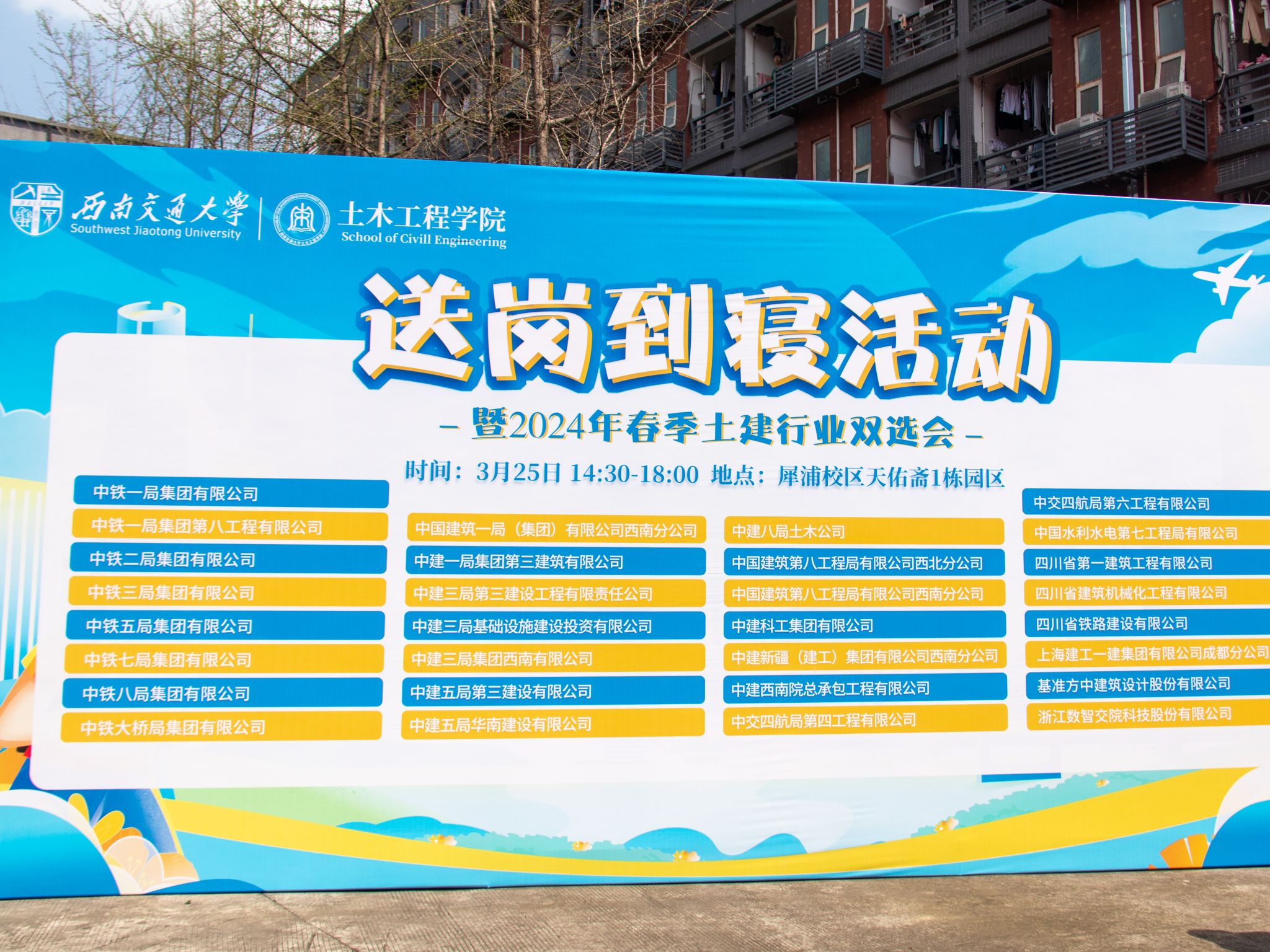 为深入贯彻落实党的二十大精神,落实党中央、国务院“稳就业”“保就业”决策部署,促进毕业生更高质量更加充分就业,色情短剧 于2024年3月25日下午在犀浦校区天佑斋1栋学生宿舍园区成功举办了一场别开生面的“送岗到寝”活动2024年春季土建行业双选会。