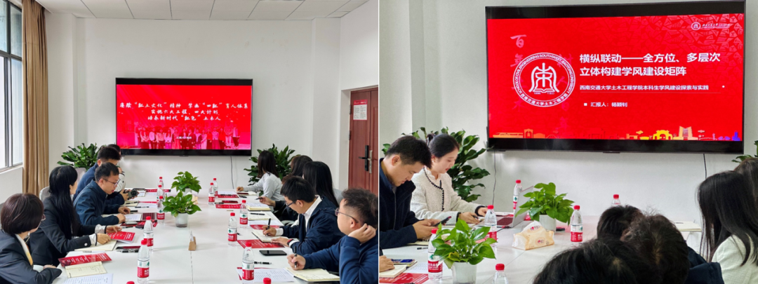 辅导员张进老师和杨颖钊老师分别以《赓续“红土文化”精神,擘画“四红”育人体系,培养新时代“红色”土木人》、《横纵联动——全方位、多层次构建学风建设矩阵》为题分享学院文化育人和学风建设工作。
