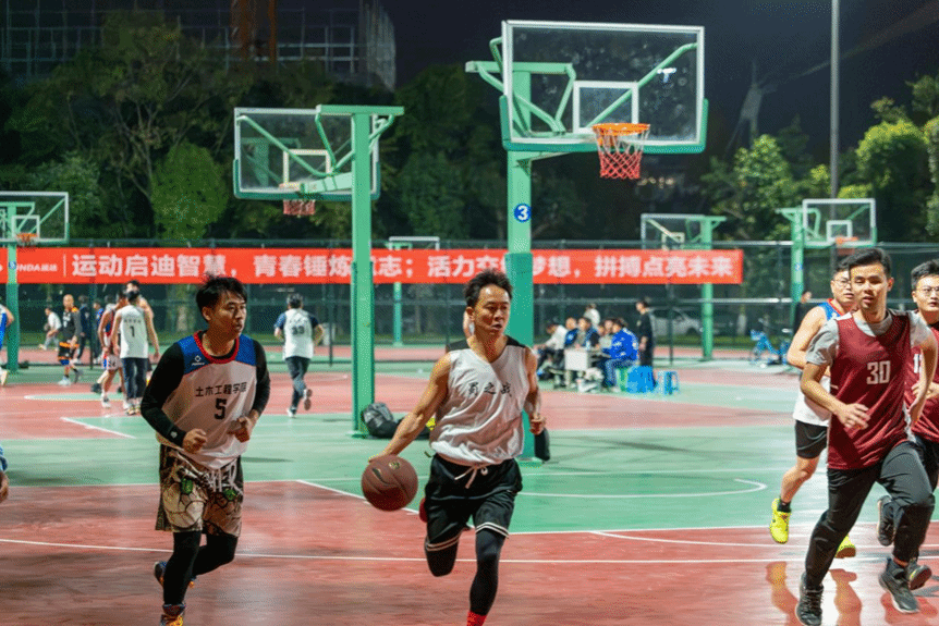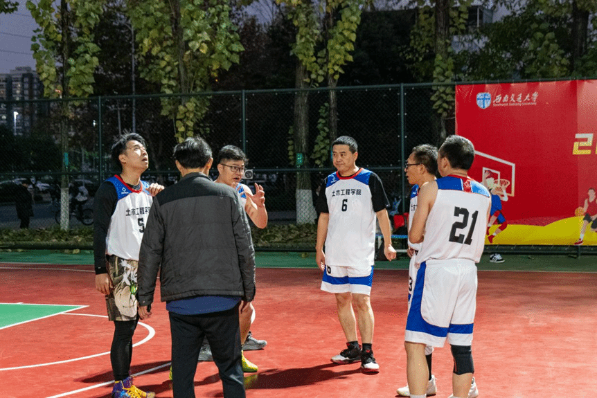 教职工篮球队凭借更加默契的配合和精准的投篮,最终取得胜利。半决赛开始,对手攻防两端都展现了不俗的实力,但学院教职工篮球队始终保持冷静和稳定,通过精妙的战术布置和团队协作,成功化解了对手的攻势,并最终锁定了胜局。