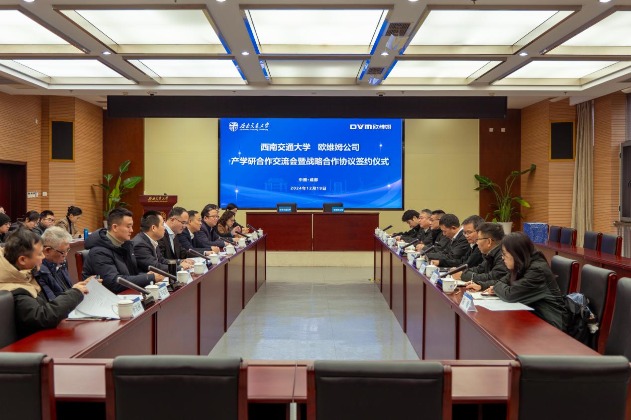 随后,柳州欧维姆机械股份有限公司副总工程师孙长军介绍公司的研发成果,西南交大科学技术发展研究院副院长张兴博对学校科研情况作简要介绍。自由交流环节,双方进一步围绕人才培养,深化校企合作交流等展开座谈。