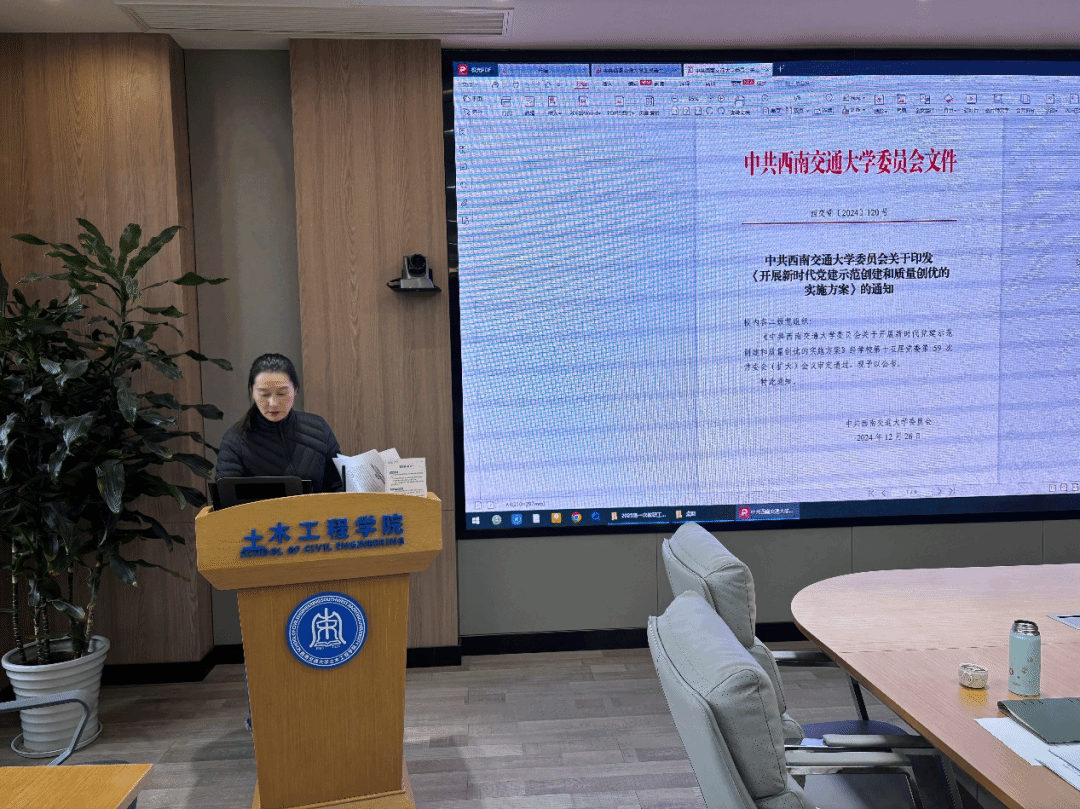 首先甘泉主任带领大家学习习近平总书记关于奋斗的语录;随后依次由熊麟老师在会上布置了基层党支部2024年度组织生活会的相关事宜;车小洁副书记带领学习《开展新时代党建示范创建和质量创优的实施方案》并布置申报工作;王楠老师带领学习《开展基层党组织“1+ 1”合作共建行动的实施方案》并布置申报工作。郑江书记带领学习了《土木工程院长2024年度工作报告》。车小洁副书记和刘萍副书记通报近期工作情况。郑江书记听取与会人员对《色情短剧