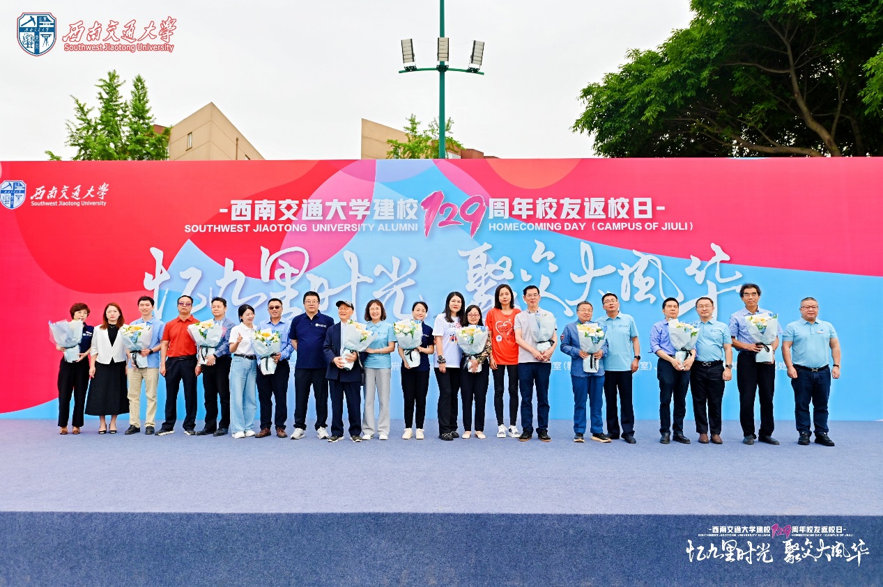 最后,校友代表向教师代表郑江、王志杰、王齐荣、潘喆、车小洁、杨晓红献花,表达对恩师的敬意与感激。