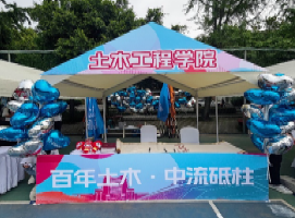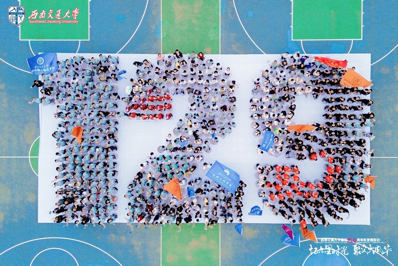 校友们航拍出“土木”字样。学院各年级、班级依次组织合影留念。