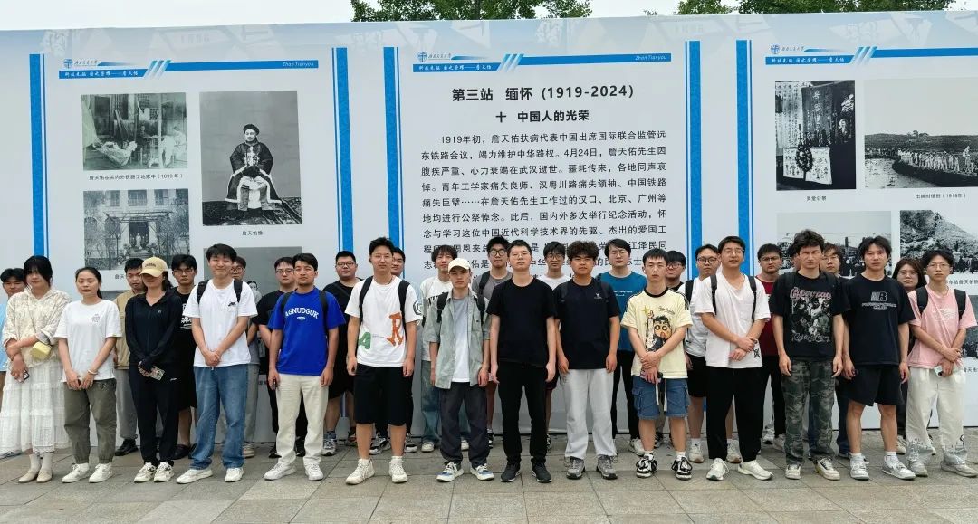 129周年校庆,弘扬"竢实扬华,自强不息"的交大精神,学院团委组织2022级团员代表,前往图书馆参观“科技先驱 国之荣耀——詹天佑”主题展览和“四海相融交大魂,一带一路高铁梦”摄影展并合影留念。通过学习詹天佑的生平故事和卓越成就,以及观看记录交大校友在世界各地奋斗足迹的珍贵影像,同学们深刻感受到交大精神的历史荣光和时代内涵,进一步增强了学生们作为新时代土木人的使命担当。