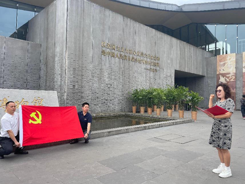 全体党员在李庄抗战博物馆广场进行了庄严的重温入党誓词。