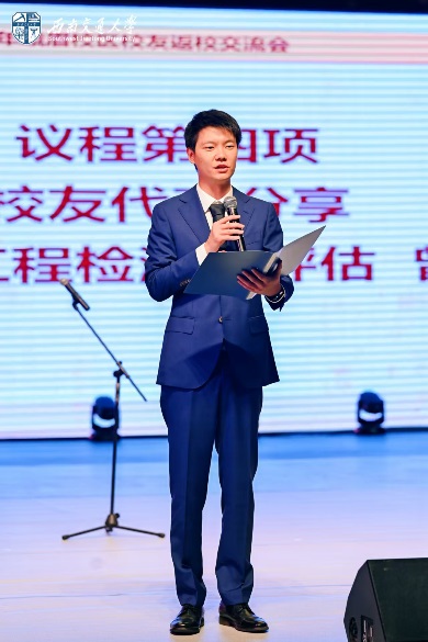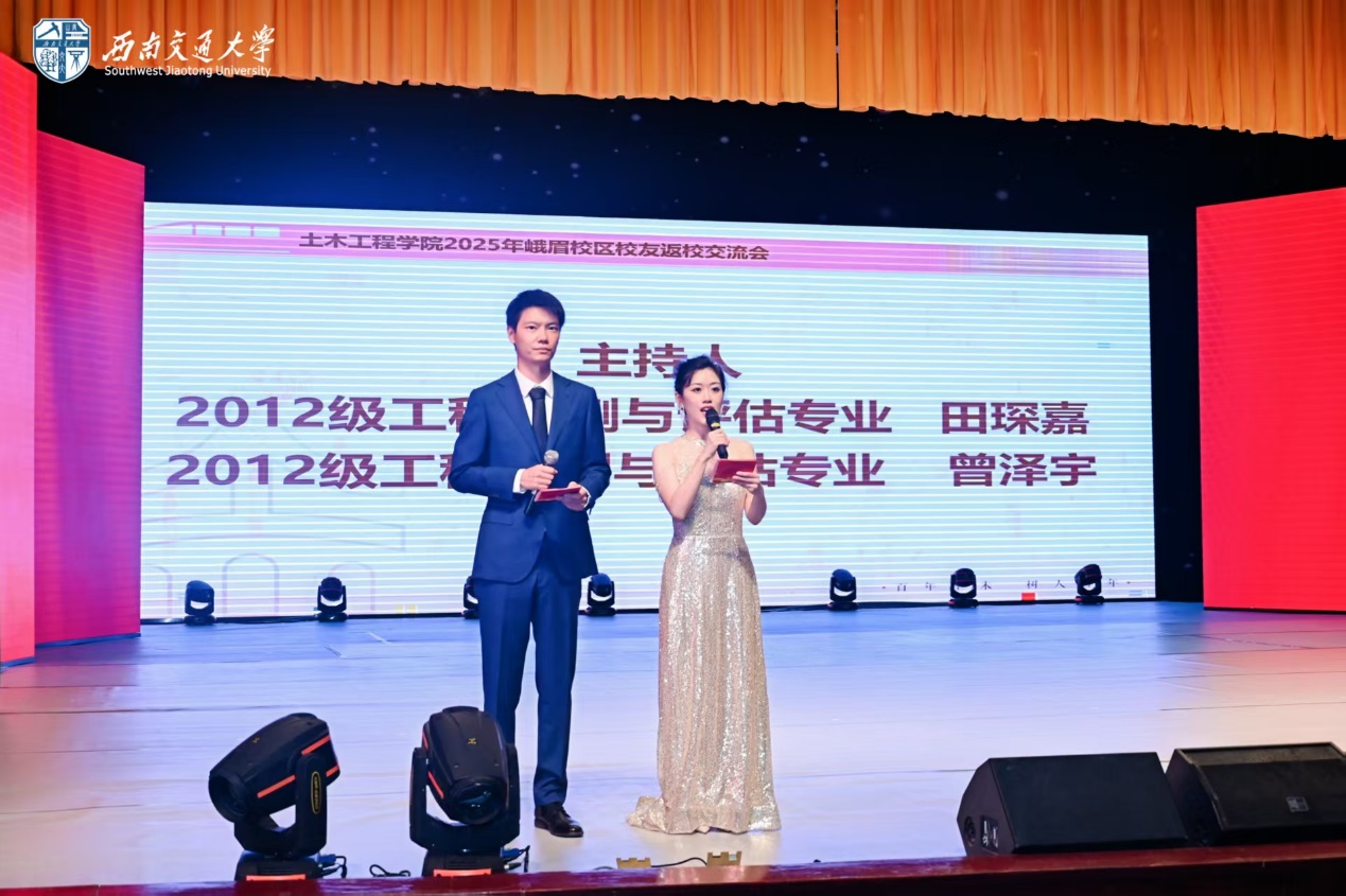 交流会由2012级工程检测与结构评估专业曾泽宇和田琛嘉校友主持。校友首先观看学院精心制作的回忆视频,一帧帧黑白与彩色的画面,从峨眉山脚下的校园风光到学生时代的青葱岁月,将校友们的思绪拉回至往昔的课堂和生活,会场内掌声迭起。