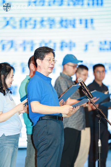 随后,12位来自1981级桥梁、铁道、隧道、工民建各专业,1990年代、2000年代、2010年代和2020级历届土木校友代表,集体朗诵了1981级桥梁专业庄勇原创诗歌《栋梁赞歌——跨世纪交大人的光阴答卷》。“报国寺的晨钟敲醒黎明,中山梁跑道的汗水浸满足印,青春随奋进的鼓点擂响”“若光阴逆流而上,若青春再度启航,我们仍会,义无反顾,选择交大;以山为砧,以血淬火,用生命锻成中国铁路最坚韧的钢梁!”赞歌齐诵,回荡会场,每一句都是交大土木人团结一心、奉献社会的精神传承,激荡起全场对行业使命的共鸣与自豪感。