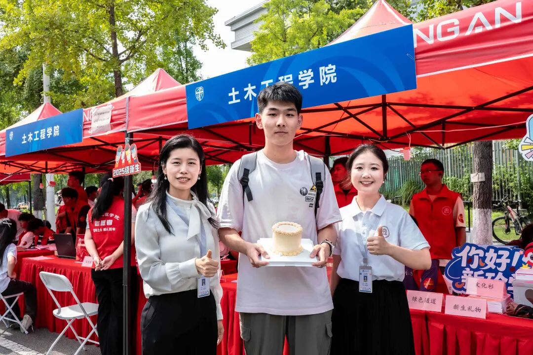 当迎新点响起喝彩声,周围新生与家长纷纷驻足鼓掌、送上祝福,相机定格此刻,照片里的笑容传递着幸福。这份“开学即庆生”的专属心意,不仅是学院对新生的暖心关怀,更让初入校园的他们,在陌生环境里收获了第一份归属感,成为大学生涯中难忘的“双向奔赴”的记忆。