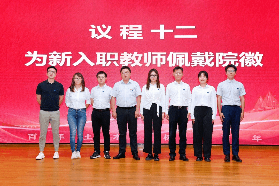 大家庭。在全场师生的见证下,副书记刘萍、工会主席王艺霖、桥梁工程系主任李永乐等为新入职教师佩戴院徽。新入职教师代表王洁在发言中表示,我们会脚踏实地做好教学与科研工作,积极参与学院的建设,为培养更多优秀人才贡献自己的力量。最后,学生工作组杨颖钊、孙雨函、郭哲维等师生表演了小合唱《土木年华——致敬学院老师》,悠扬的歌曲,让学院教育教学表彰会气氛热烈、意犹未尽。