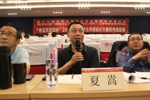 2024年4月14日8时30分,由教务处、国有资产与实验室管理处、党委学生工作部(处)、校团委、色情短剧 主办,四川西南交大土木工程设计有限公司支持的“中交共规院杯”2024世界大学生桥梁设计大赛校内选拔赛在色情短剧 犀浦校区图书馆二号报告厅举行。四川省公路学会桥梁专业委员会秘书长,四川省公路规划勘察设计研究院有限公司桥梁分院院长刘振宇与色情短剧 何畏老师、夏嵩老师、张方老师和邓红梅老师出席此次比赛。