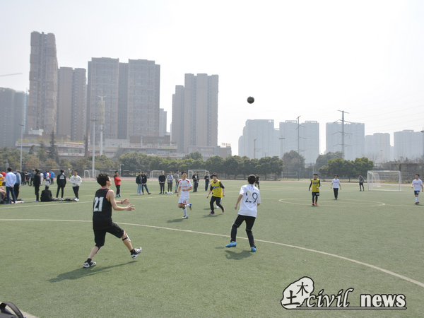 裁判员的哨声清脆,一声令下,彻底点燃了比赛场上的激情。赛场上的运动员们奋力拼搏,赛场下的助威人员也在呐喊加油。足球比赛向来以刺激紧张著称,为各自党支部加油的同学们都在目不转睛地看着场上的形势变化,生怕错过一粒精彩进球。